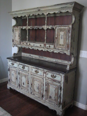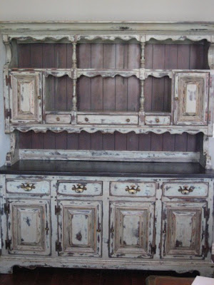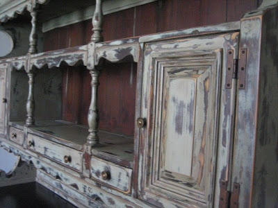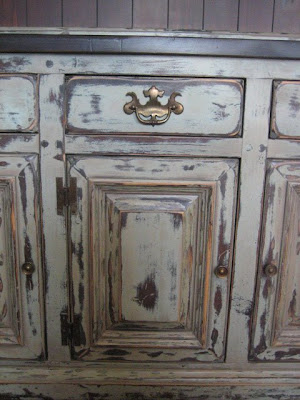 - SOLD - Vintage, solid wood console/dresser in a heavily distressed and weathered finish. Although the finish is very rustic, it is also ve...