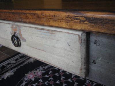 - SOLD - Vintage, solid wood console/dresser in a heavily distressed and weathered finish. Although the finish is very rustic, it is also ve...