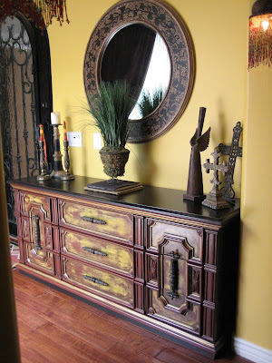 Rustic old world piece. Use as a dresser, entryway piece, hang a plasma above or set a flat screen on top. Buffet/sideboard in your dining area. Although it looks like cabinets, they are ALL drawers, 9 total. Detailed carvings.