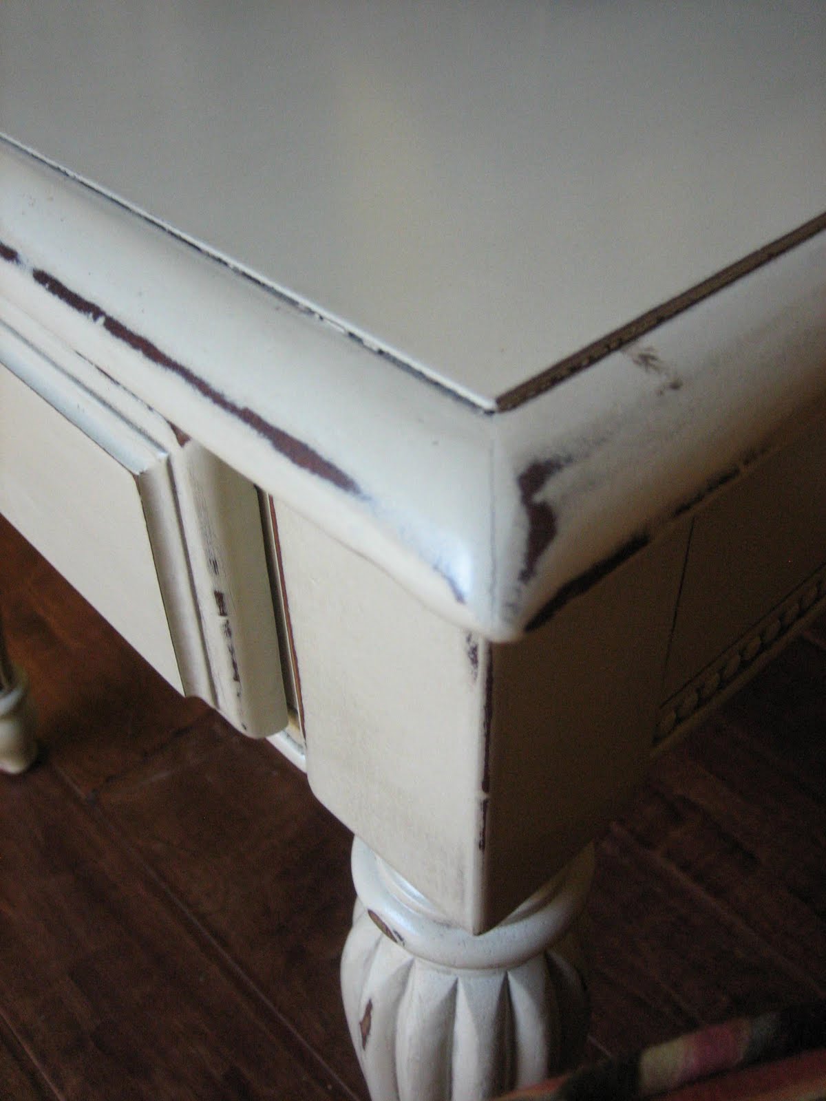Elegant pair of matching wood end tables and coffee table. Single drawer on each end table. Antique white finish with glaze and distressed. Pretty intricate details. Intricate rolled legs and detailed beading. Coffee Table: ~$$$ SOLD $$$~