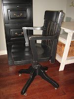 Antique swivel arm chair on caster's. Tiger oak refinished in smooth black with light distressing just along edges.