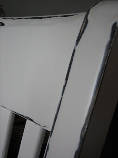 White distressed swivel desk chair.