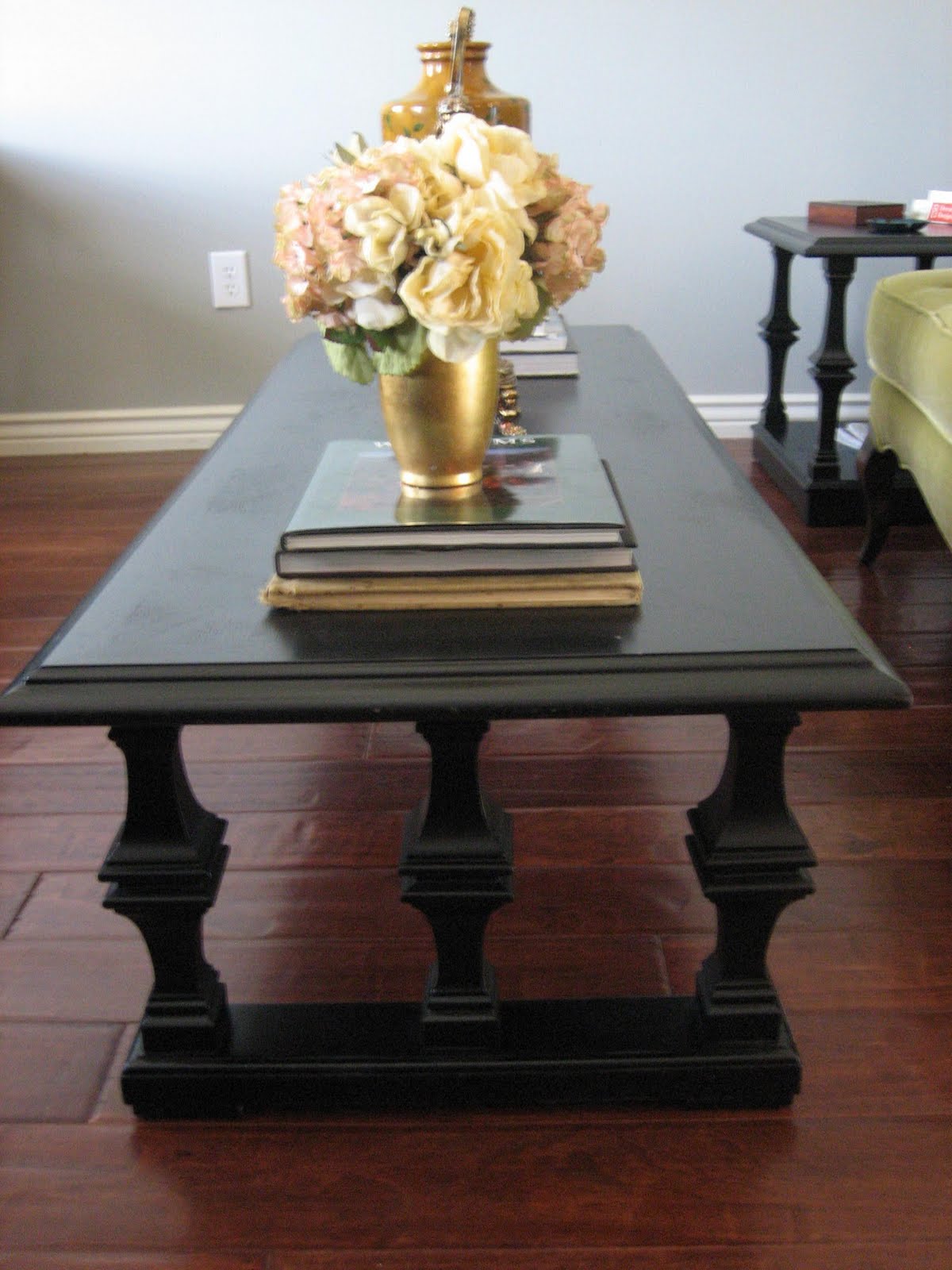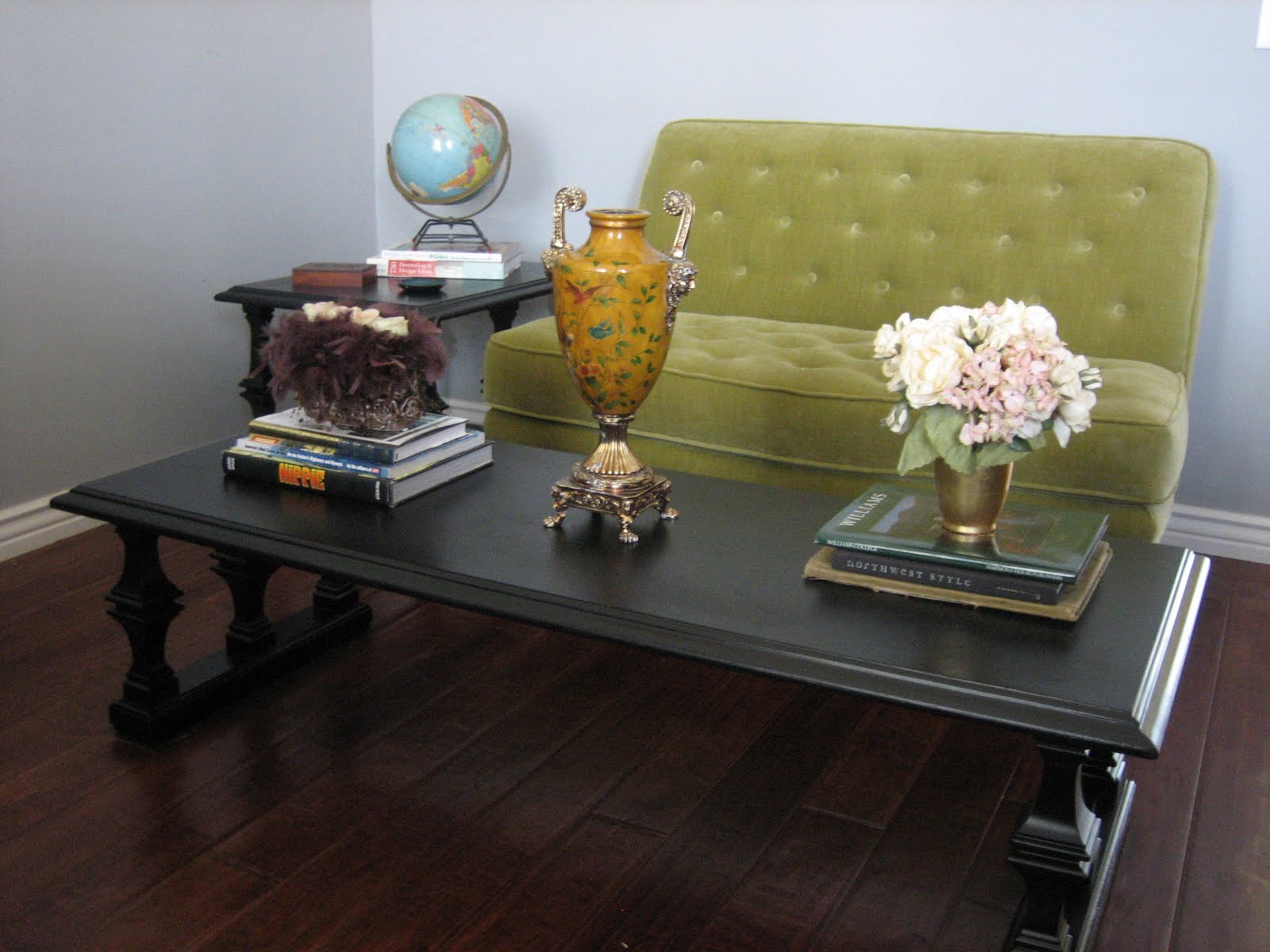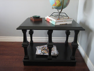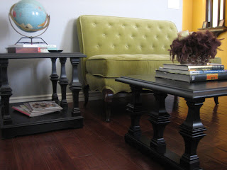 Lane mid-century, Hollywood Glam/Glamour coffee table and end table. Interesting carved legs. Black finish.