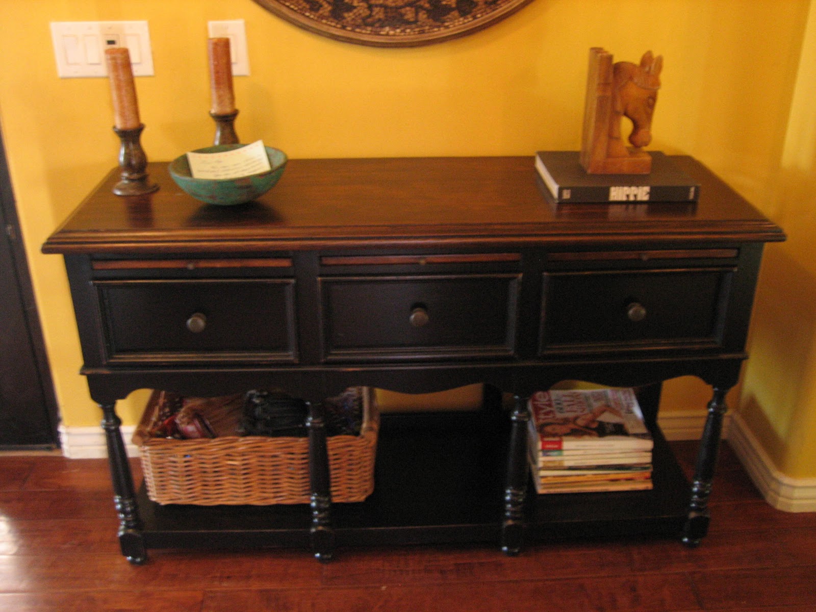 | Use as a dining buffet, entryway table or console and set a t.v. on top or hang a plasma above. 56" wide x 19" deep x 33.5" tall |
