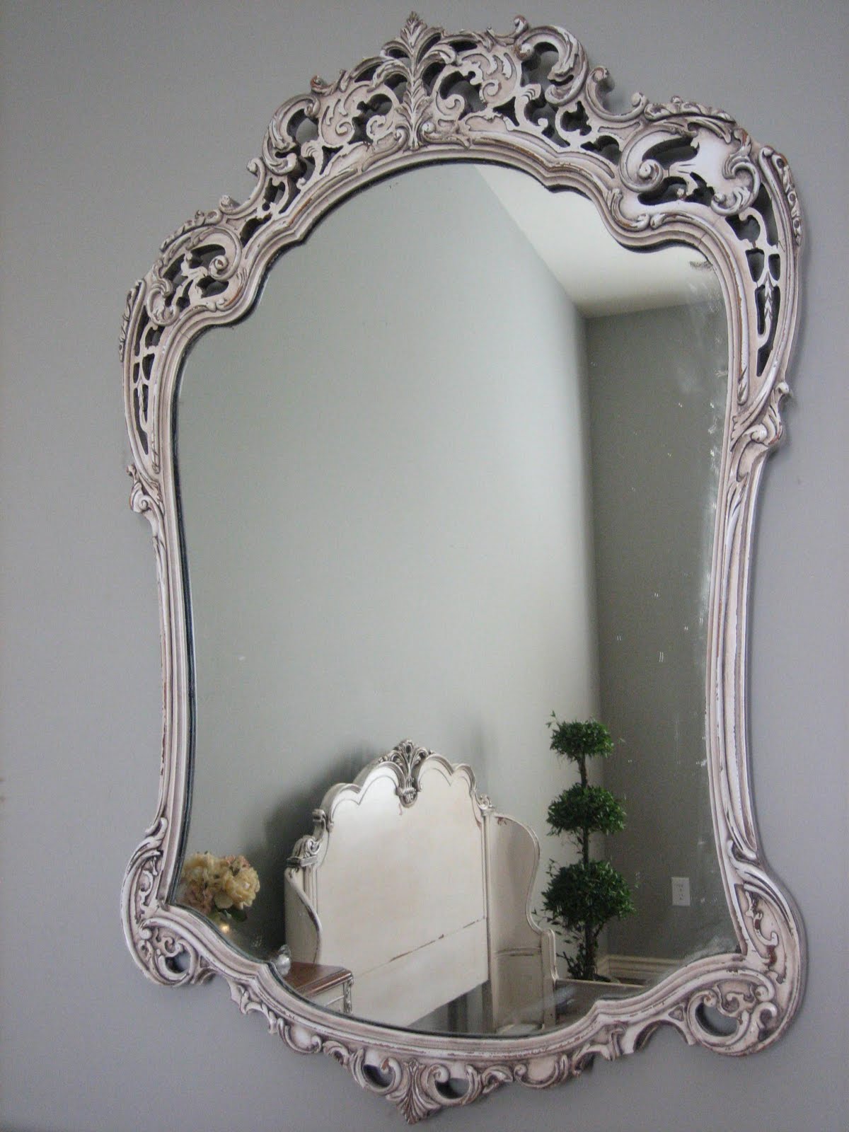 Very detailed and ornate. Hangs on wall. Pretty over a dresser or buffet, bath vanity, dressing vanity or in hallway, entryway.
