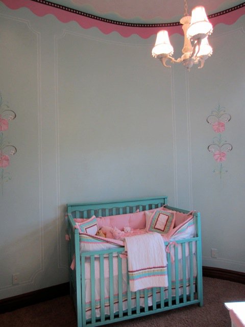 How adorable is this nursery! Makes me almost want to try for a little sister for Ozzy- ALMOST! :) Mike refinished the crib and changing table in a turquoise, glider and ottoman in white. The sexy Mama behind this room is a repeat customer. She had purchased a few pieces in the past in that same turquoise and thought this color would work well for the nursery. She thought right :)